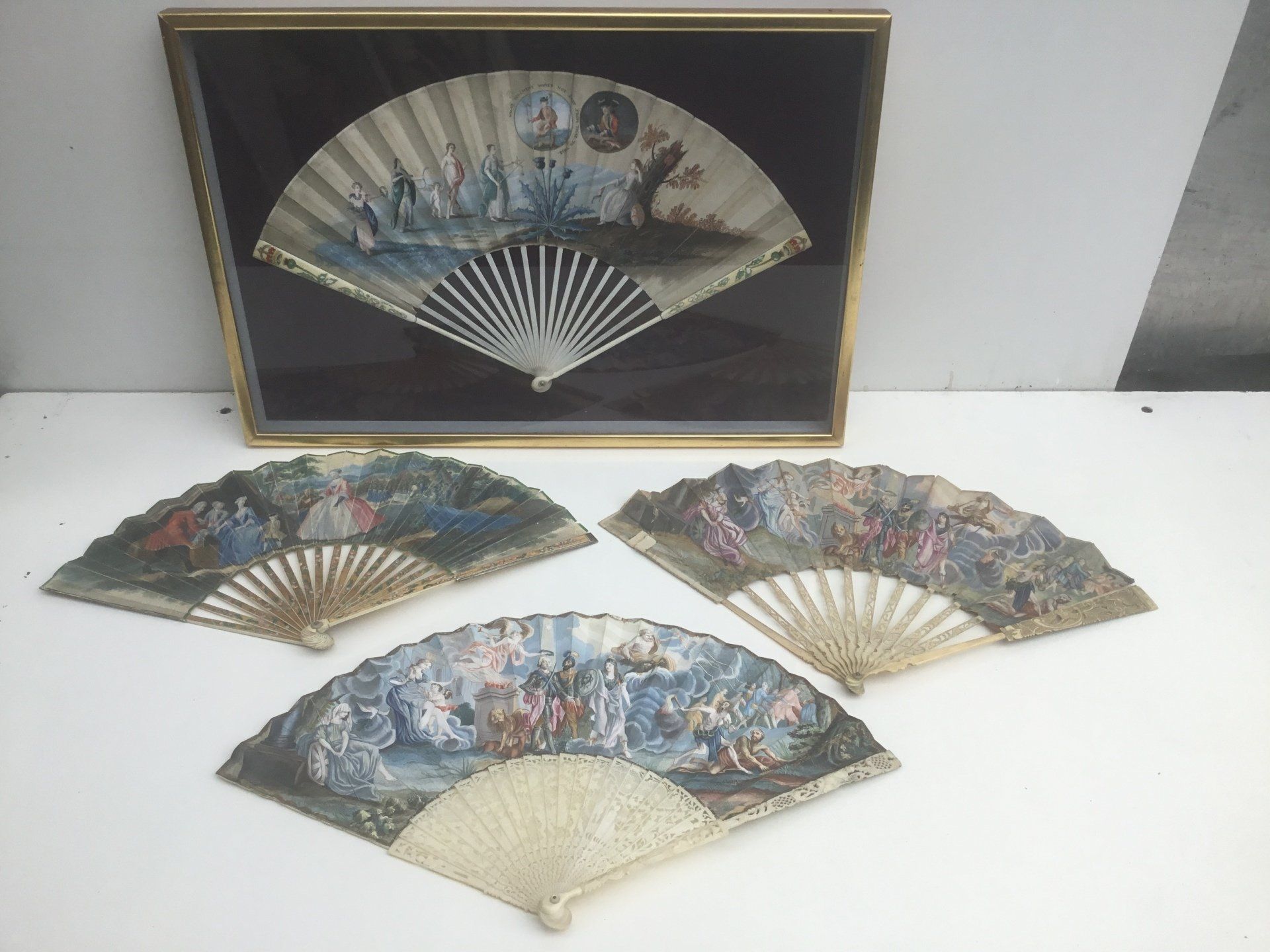 These four 18th century fans are made from ivory and paper.