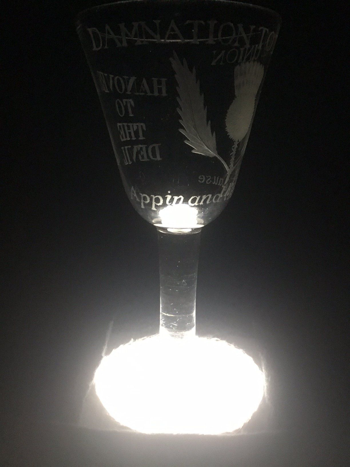 Amen glasses are the rarest and most iconic of all Jacobite glasses and were the most dangerous of all Jacobite artifacts to own.