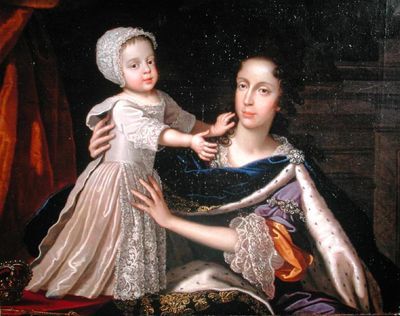 This very personal image of the three year old the future James VIII standing on his mother, Queen Mary of Modena's knee. It was painted in 1690.