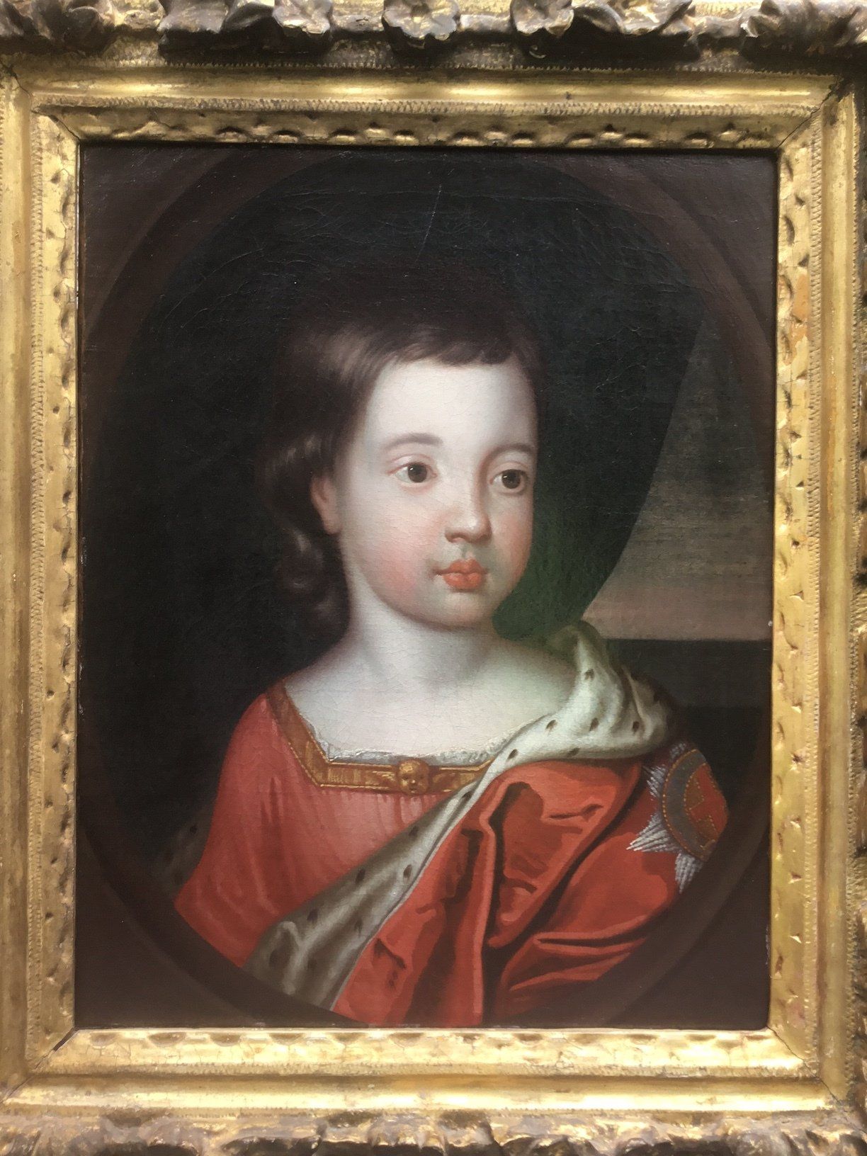 This portrait shows James as a young boy pointing across the channel to England to his 'rightful home'. It would have been painted in the late 1690s